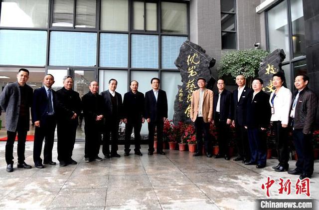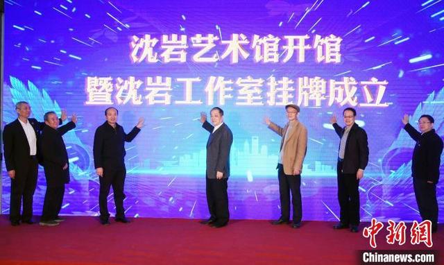 著名艺术家沈岩(右三)与来宾共同为沈岩艺术馆开馆暨沈岩工作室挂牌成立启幕。