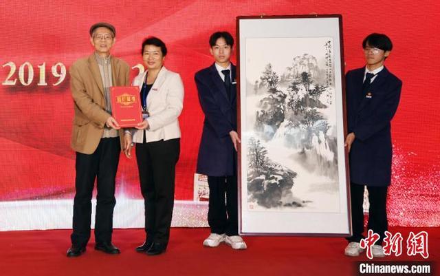 著名艺术家沈岩先生(左一)向福建船政交通职业学院赠送书画作品