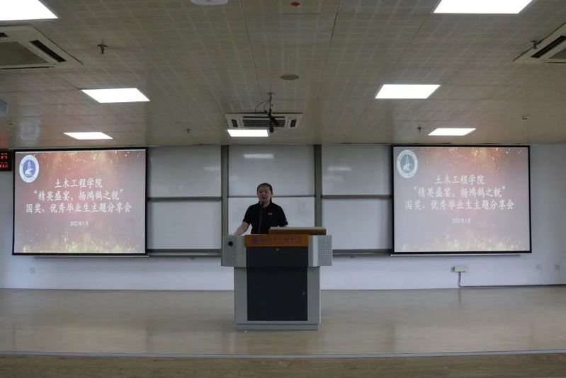 为充分发挥榜样的力量,展现当代大学生德、智、体、美、劳全面发展的精神风貌,2022年5月29日,土木工程学院在科技楼305召开了“精英盛宴,扬鸿鹄之锐”国家奖学金、优秀毕业生主题分享会,以讲座的形式,邀请陈启有、温娜、马福冰、郑永琪等八位国家奖学金、优秀毕业生分享自身经验,传授学习方法,助力土木工程学院优良学风建设。