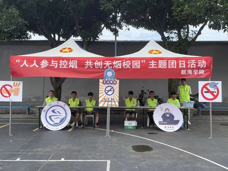 航海学院大学生自律委员会成员们通过宣传吸烟的危害、与控烟泡沫板合照、学习控烟手势舞、阅读宣传手册拿礼品等方式向同学们开展无烟日宣传活动。