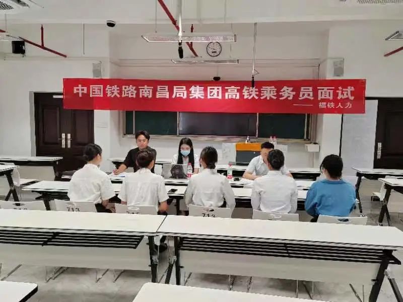 本次招聘会招聘的岗位是中国铁路南昌局集团公司福州客运段下属福州站、厦门站、厦门北站、龙岩站始发动车组高铁乘务员职位,面试过程中,同学们沉着冷静、自信应答,整场面试有条不紊地进行。