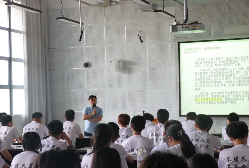 7月1日上午,福建船政交通职业学院“学生膳食管理员培训(第二期)”开班仪式在武夷新区职教园308智慧教室举行。学院党委委员、副院长高汝武在开班仪式上做动员讲话,他号召广大同学要以服务师生打造美丽船政为出发点和落脚点,发扬百年船政精神,推动学院膳食管理水平提升,为全院师生营造一个安全、卫生、文明、有序的用餐环境。