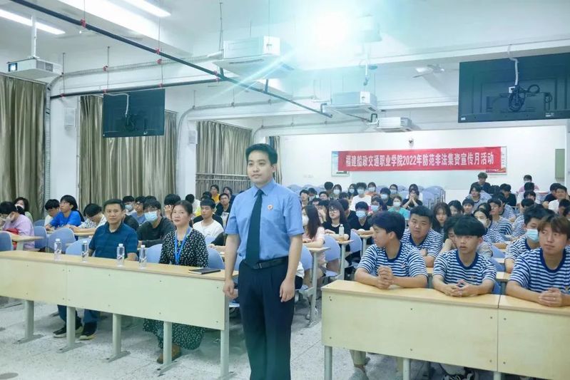 近日,学院特邀仓山区检察院进校开展“与民同心,为民守护”防范非法集资知识讲座,由福州市仓山区人民检察院第二检察部副主任、共青团仓山区人民检察院支部委员会书记黄亮主讲。黄亮书记列举了详实的发生在大学生身边的相关诈骗案例,并通过剖析典型案例,生动形象地揭示了骗子行骗的常用伎俩,并细致地分析了当前大学生容易上当受骗的客观原因。活动传播了反诈知识,帮助同学们学会理性思考,学习自我保护的防诈技巧,切实提高了大家的识骗防骗能力。
