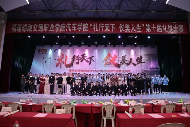 为庆祝中国共产主义青年团成立100周年,弘扬中华优秀传统文化,传播社会主义核心价值观和当代文明新风尚,传承福建船政交通职业学院“习礼仪”的优良校风,引领学院学子在青春的赛道上跑出好成绩,迎接党的二十大的胜利召开,6月18日晚,汽车学院2022年第十届礼仪大赛在北区文体中心隆重举行。参加本次活动的师生有汽车学院党总支书记蔡华锦、院长苏庆列、辅导员以及20、21级学生代表们。本次比赛内容包括主题演讲和情景剧表演两个环节。