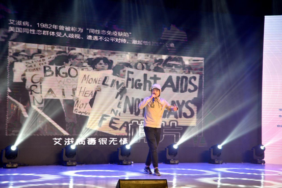 当日在福建船政交通职业学院的室内体育馆“防艾”主会场内,有来自福州市福州语歌曲协会的“防艾艺术团”向大家展示了近年改编的意义深刻的系列“防艾”精品节目,更有仓山疾控及东升街道社区卫生服务中心的12位年轻医护人员别具一格的唱跳节目《我不艾》。