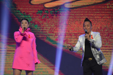 东南歌王许振旗,与嘉宾代表一起演唱“防艾”歌曲《防艾宣传大家唱》,把现场气氛推向高潮。