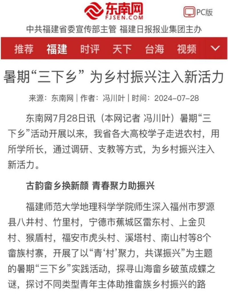 东南网7月28日讯(本网记者 冯川叶)暑期“三下乡”活动开展以来,我省各大高校学子走进农村,用所学所长,通过调研、支教等方式,为乡村振兴注入新活力。