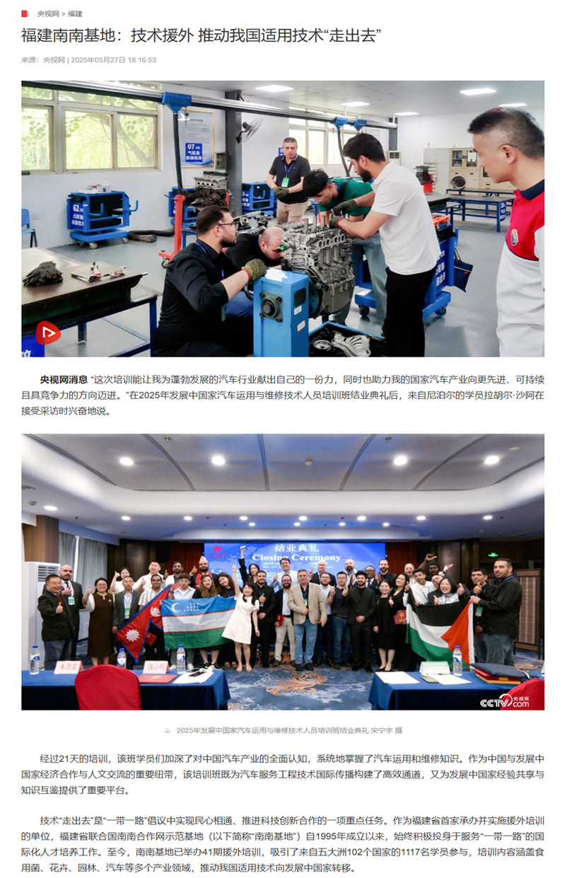 媒体聚焦 | 央视网报道我院协办福建省联合国南南合作项目培训班