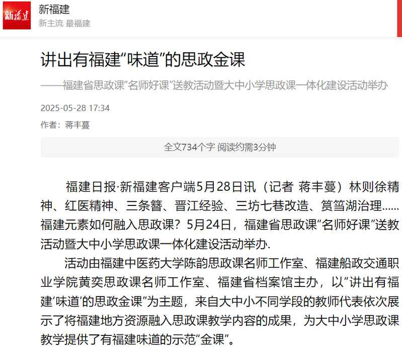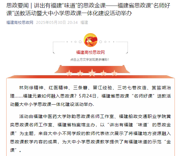 媒体聚焦|新福建、福建省高校思政网报道我院与福建中医药大学、福建省档案馆联合主办的福建省思政课“名师好课”送教活动