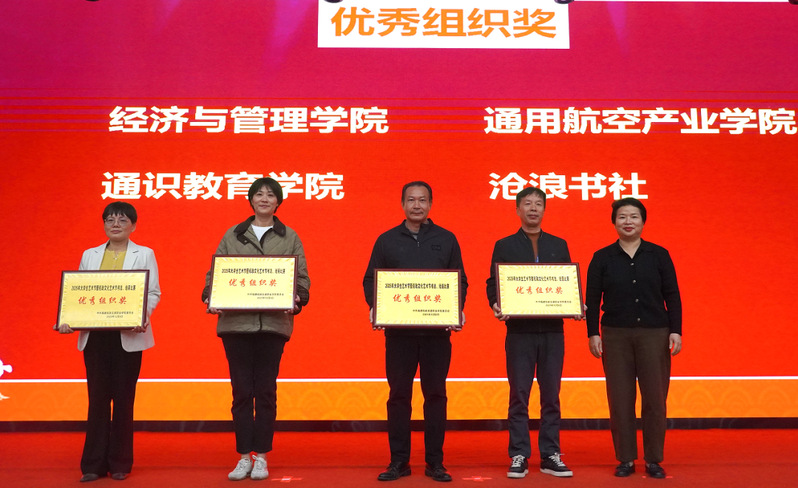 颁奖会上,还为获得油画、素描、国画、毛笔、硬笔五个组别的一、二、三等奖的27名学生颁发获奖证书,并授予经济与管理学院、通用航空产业学院、通识教育学院、沧浪书社“优秀组织奖”。