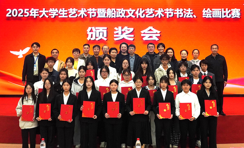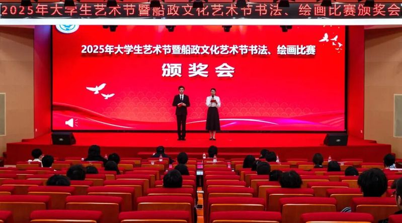 为进一步提升学生艺术素养,12月8日下午,学院2025年大学生艺术节暨船政文化艺术节书法、绘画比赛颁奖会在福船园艺新楼331学术报告厅举行,学院党委副书记张辉,各职能部门、各二级学院党总支负责人,各承办单位相关人员以及学生代表150多人出席颁奖会。