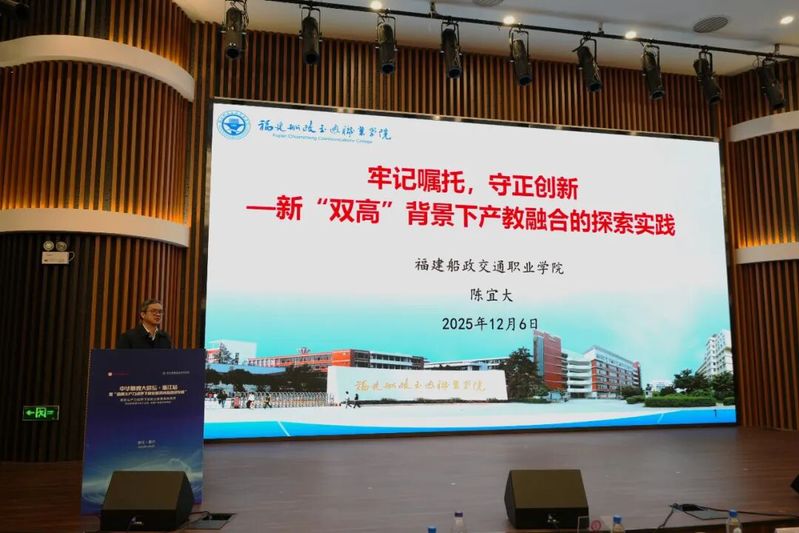 在活动交流环节,陈宜大以《牢记嘱托 守正创新——新“双高”背景下产教融合的探索实践》为题,从“产教融合的时代要求”“船政学堂的办学历史和产教融合”“福建船政交通职业学院产教融合的实践”三个层面,详细介绍了学院传承船政学堂“厂校一体、工学结合”的办学理念,以“办学能力高水平、产教融合高质量”为导向,在优化专业结构布局、创新产教融合新路径、构建技术技能服务平台等方面所开展的一系列富有成效的实践探索,引起了行业专家、职教同仁以及企业代表的广泛共鸣。