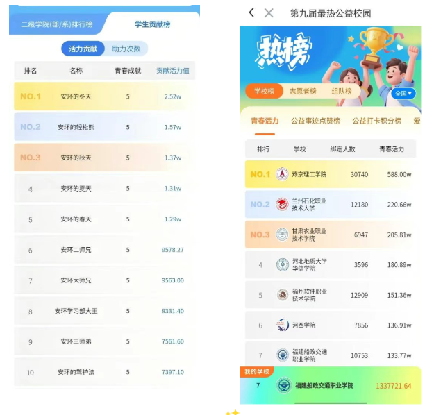 “最热公益校园”用线上轻量化参与的方式,让 “奉献” 不再是遥远的口号,而是课间几分钟的随手善举、课余时光的点滴坚持,让每个船政学子都能在力所能及的范围内传递善意。这份公益热忱,协会已坚守多年。从第二届跻身全国第五、福建第二,到第七届闯入全国前百、福建第三,再到第八届勇夺全国第二、福建第一,每一份荣誉都凝结着历届船政学子的爱心与坚持。