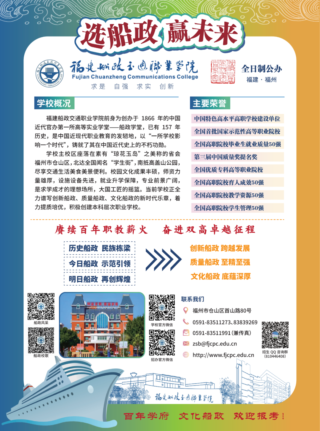 学校传承福建船政学堂“厂校一体”的办学模式,立足交通,主动融入区域经济发展新趋势,构建基于“双主体、八平台、五协同、两支撑”的“四链融通”产教融合长效机制,建立校企合作共同体,为职业教育赋能、为区域产业注智。