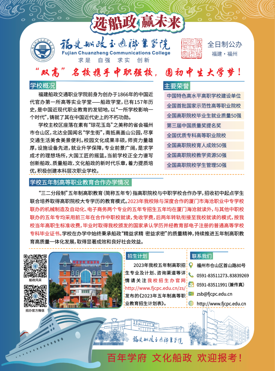 春招速递·船政来了 |春暖花开向未来 登“船”逐梦新时代——福建船政交通职业学院2023年高职分类招考招生简章