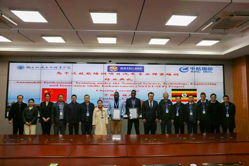 中航国际成套设备有限公司职业教育部部门经理助理徐华京先生,学院教务处、科技处、对外交流中心等部门负责人参加了结业典礼,并与全体乌干达学员一同合影留念。