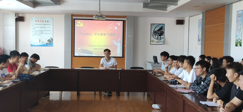 2019年10月15日,安全技术与环境工程系在学生中开展“不忘初心、牢记使命”主题教育学习,此次学习由系团总支书记牟鹏飞带领安全技术与环境工程系入党积极分子以及预备党员进行集中学习。