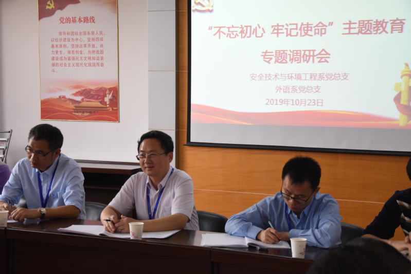 为扎实开展“不忘初心、牢记使命”主题教育,10月23日下午,福建船政交通职业学院党委副书记、院长陈锦辉同志带领机关相关人员到我系开展专题调研座谈会,安全技术与环境工程系和外语系全体教师参加了调研活动。
