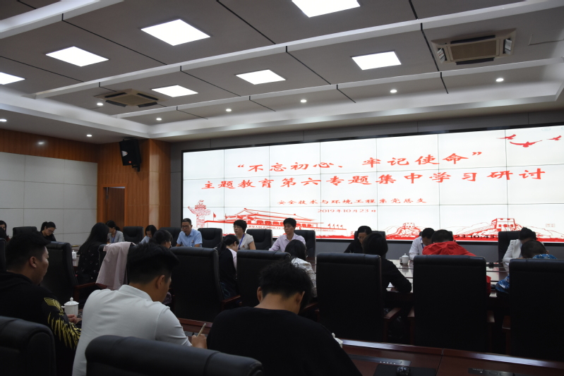 按照系部“不忘初心、牢记使命”主题教育集中学习研讨方案安排,10月23日上午,安全技术与环境工程系党总支在1号楼会议室召开主题教育第六专题集中学习研讨会。系部书记许友孝、主任郑雪琴,系部全体党员参加了会议。