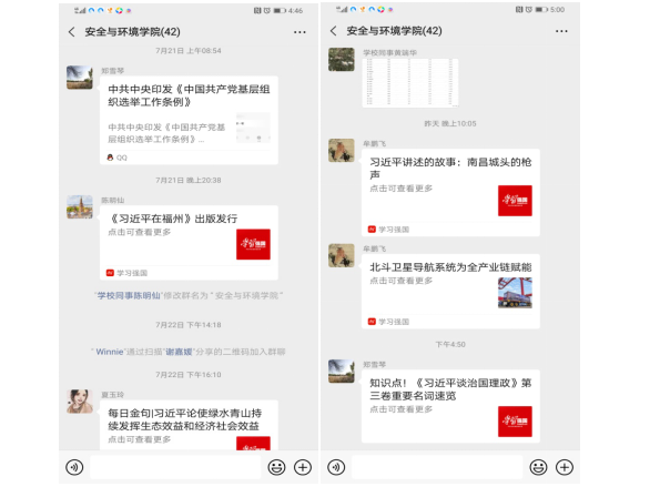 自“学习强国”平台推广使用以来,安全与环境学院党总支认真组织部署,创新学习举措,精心推动落实,在推广应用的速度、广度、热度、力度上下功夫、求实效,搭建”学习常态”轨道,增强了全体党员的争先进位意识。