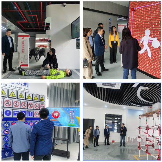 姚书记一行首先参观了安全与环境学院实训中心安全救护、居家安全、交通安全、消防安全、智慧工地等实训室,了解了实训中心建设背景、功能、社会服务、二期建设规划等情况,并体验了触电救助、垃圾分类、家庭隐患排查、电梯事故应急处置、台风模拟体验、食品安全检测等情景实训教学项目。
