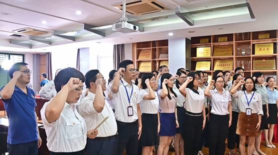 党总支书记郑雪琴同志作为领誓人,带领全体党员面向党旗,进行庄严宣誓。随后陈明仙副院长、黄端华、廖俊彦等6名党员分享入党初心,用朴实的语言、真挚的情感回首过去,立足当下,展望未来,在场党员无一不深受鼓舞和感动。