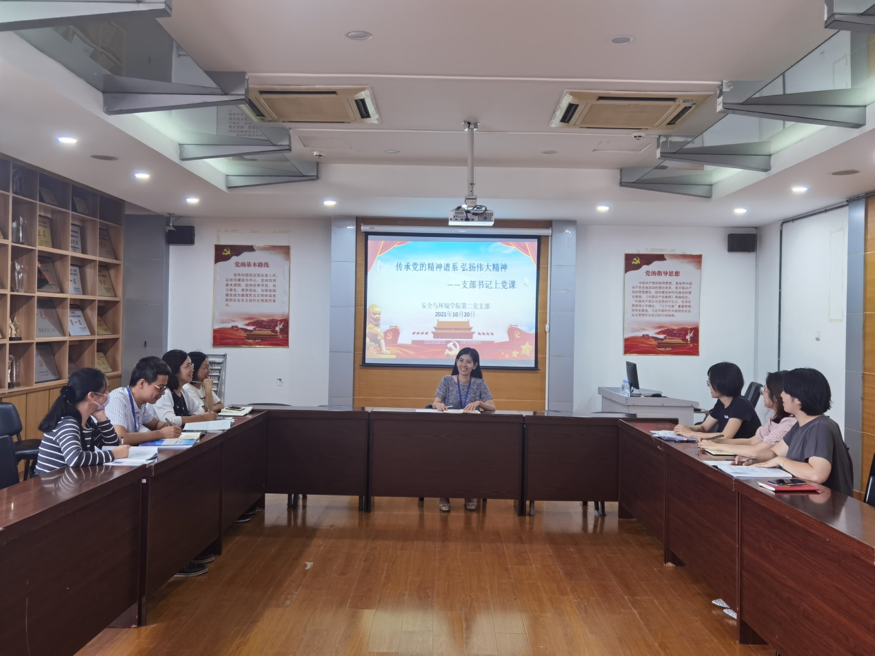 为推进党史学习教育走深走实,安全与环境学院各支部策划推出了中国共产党人的精神谱系学习系列活动,组织党员干部通过专题学习、专题党课、专题培训、主题党日等形式,切实把中国共产党人的精神谱系学习好、继承好,把学习成效转化为工作成果。各支部积极学习了井冈山精神、苏区精神、长征精神、雷锋精神等。各支部党员主要学习了永远把伟大建党精神继承下去发扬光大、跨越时空的井冈山精神、弘扬苏区精神赓续红色血脉、继承长征精神共铸复兴伟业、延安精神永放光芒、传承兵团精神扎根奉献边疆、让学习雷锋精神在祖国大地蔚然成风、学习弘扬焦裕禄精神、传承大庆精神凝聚奋进力量。