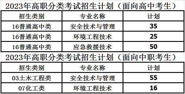 安全与环境学院2023年拟开设安全技术与管理、环境工程技术、应急救援技术三个专业,其中安全技术与管理、环境工程技术是“中国特色高水平高职学校”重点建设专业群核心专业。