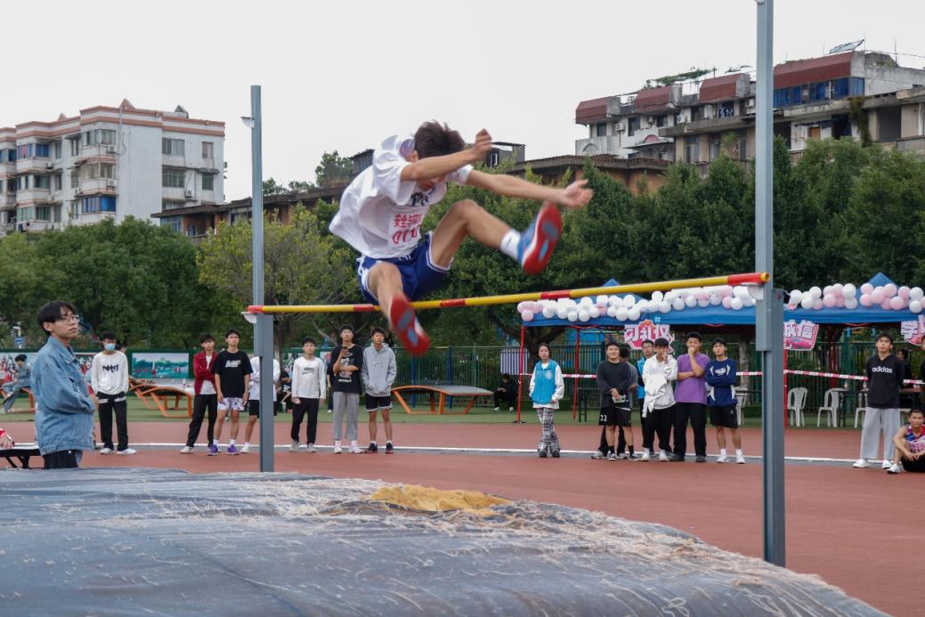 加速起跑,留下青春的身影。纵身一跃,完成一次超越。力与美在空中碰撞,化为成功与鲜花围绕在你的身旁。