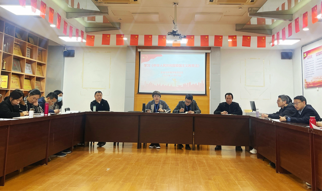为深入贯彻《中华人民共和国爱国主义教育法》,安全与环境学院党总支于2023年12月13日下午在909会议室组织全体教职工开展专题学习会。此次会议旨在引导广大教职工坚定理想信念,培养爱国之情,更好地落实立德树人的根本任务。