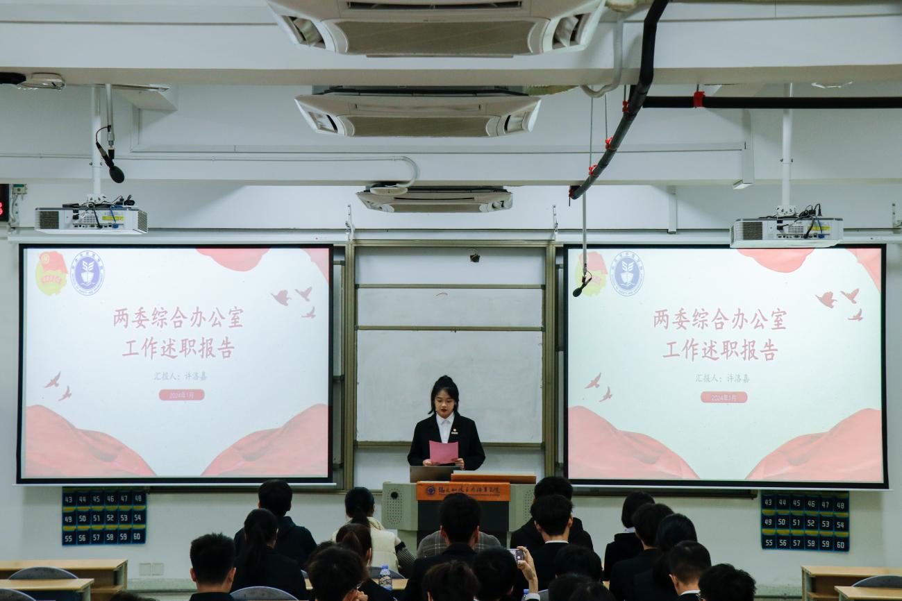 院团委、学生会各个部门第一负责人,将过去一年的工作成效、存在的问题及整改办法、下一步规划等内容进行详细地汇报。