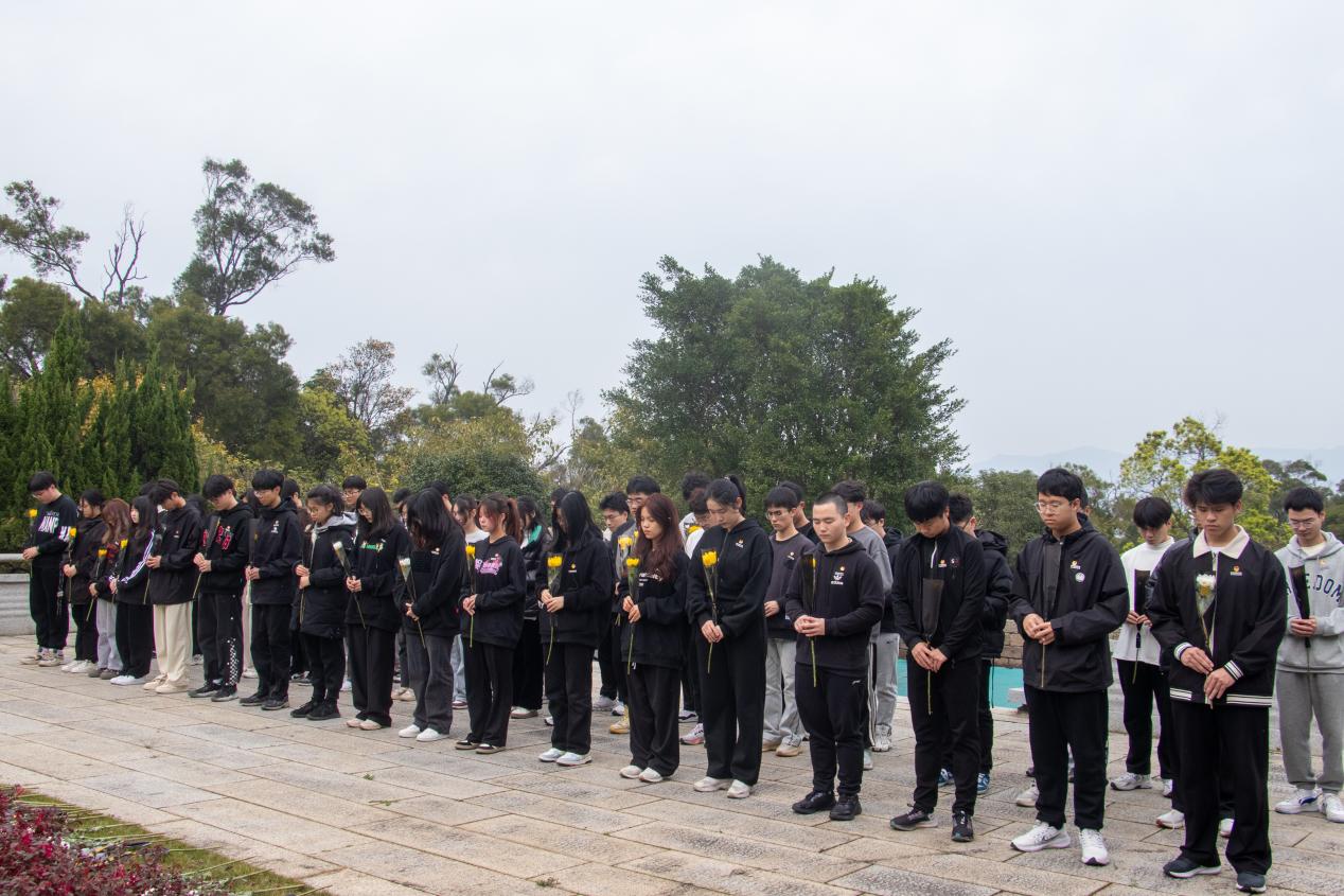 高盖山革命军人烈士墓园位于福州市仓山区盖山镇首山村高盖山天池顶。1949年8月,38位中国人民解放军在解放福州战役中牺牲,安葬在首山村高盖山天池。为了缅怀革命先烈,学习并发扬革命先烈的爱国主义精神,建立了高盖山革命军人烈士墓园。学生们怀着崇敬的心情,排着整齐的队伍,井然有序地到达庄严肃穆的先烈墓园。他们面色凝重,手持鲜花,以最虔诚的姿态,深切缅怀那些为了国家和人民的利益而英勇献身的先烈们。