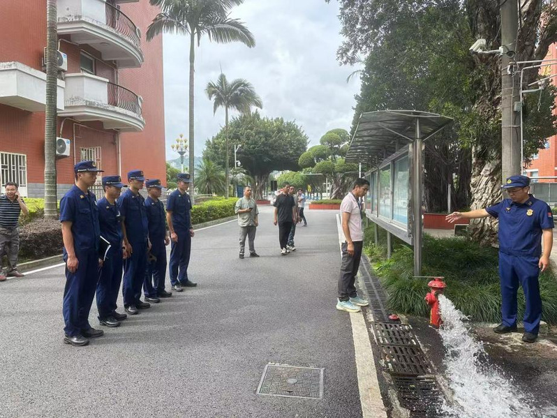 检查过程中,蓝鹏副处长就学校消防安全工作的开展情况作了详细汇报。林参谋一行仔细查阅了学校消防设施台账,实地走访各重点区域,重点对消防设施配置、灭火器状态、安全出口指示标志等环节进行了细致检查,并现场测试了消防水管的运行状况。检查组对我校在消防安全方面所做的扎实工作给予了充分肯定。