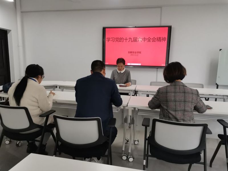 2021年11月17日下午,创新创业学院召开党支部(扩大)专题学习会议,传达学习党的十九届六中全会精神,创新创业学院全体人员及支部党员参加。