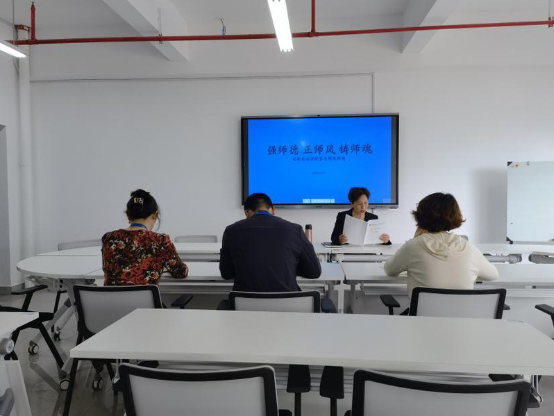 2022年4月15日,创新创业学院组织开展以“强师德正师风铸师魂”为主题的教育活动,学习了《中共中央国务院关于全面深化新时代老师队伍建设改革的意见》、《新时代高校教师职业行为十项准则》、《教育部关于高校教师师德失范行为处理的指导意见》、《中共教育部党组关于完善高校教师思想政治和师德师风建设工作体制机制的指导意见》以及《福建船政交通职业学院教师职业行为负面清单及师德失范行为处理办法》等上级有关师风师德文件精神。