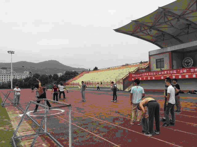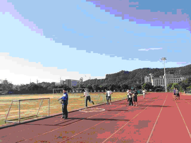此次海员技能大赛将进行知识竞赛、海上操艇(非机动艇)、撇揽操作、海员铁人三项接力(游泳+拖带溺水人员+攀爬3米高的救生绳网)等项目的竞技。(图为系部组织参加选拔的学生们利用课余时间在北区运动场进行撇揽操作训练。