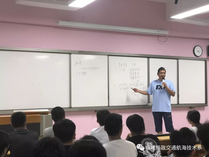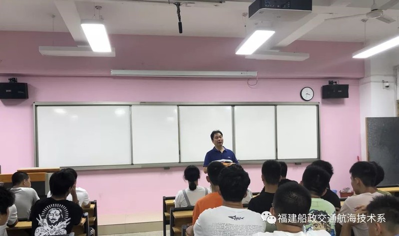 郑友赋老师则为同学们介绍了本专业的课程及就业前景,并通过船舶运输管理的基本理论知识,点明在未来的学习生活中,同学们将接受船舶操纵、避碰及合理运用各种航图、导航仪器仪表和GMDSS通信方面的基本训练,以及消防、急救等一些高级船员必备的能力培养。并期望这些系统性的学习,能对同学们未来的生活有所帮助。
