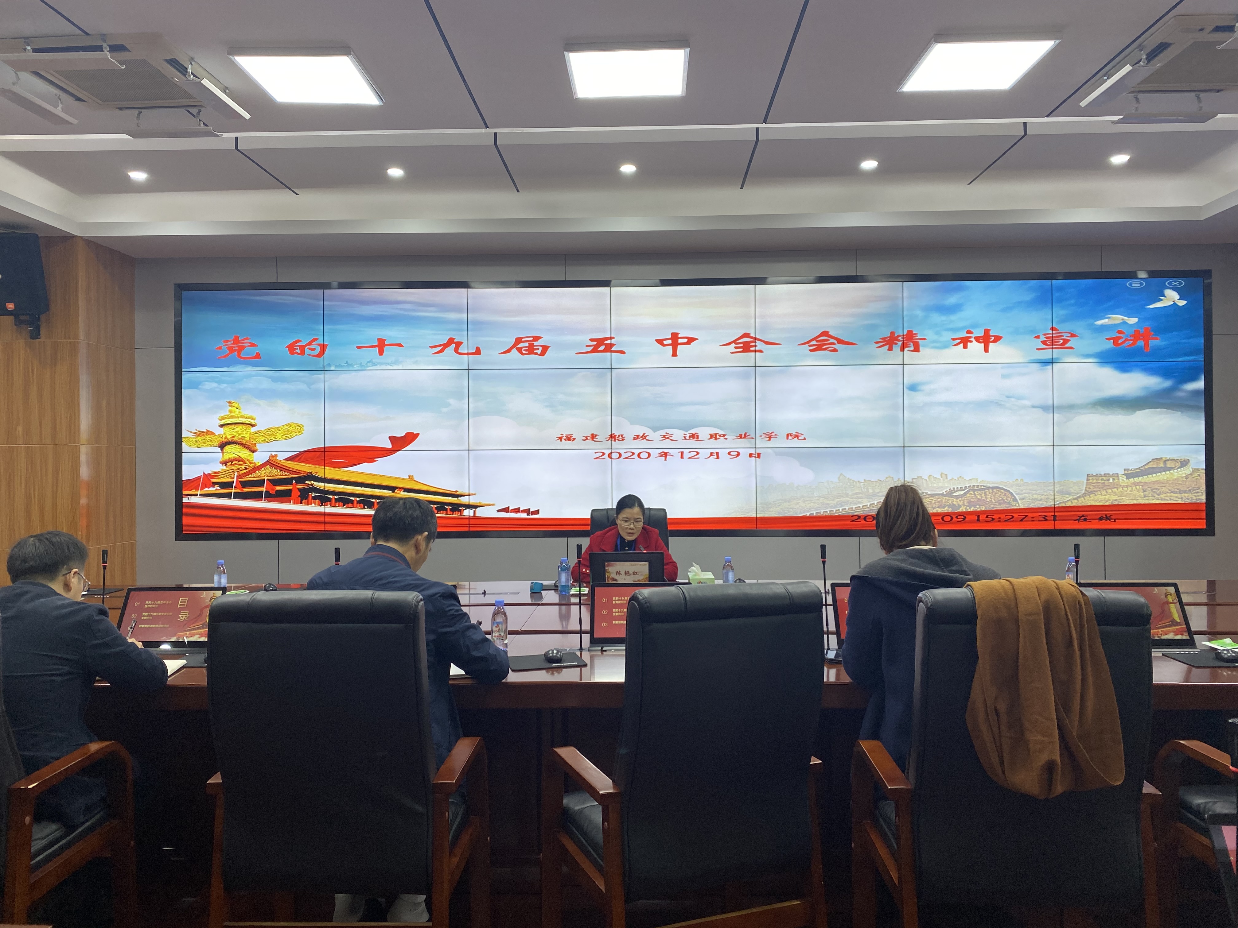 12月9日,学校副校长、航海学院总支书记陈艳红在北校区1号楼第一会议室作学习贯彻党的十九届五中全会精神宣讲报告,航海学院、经济与管理学院的党政领导、党员干部等参加报告会。