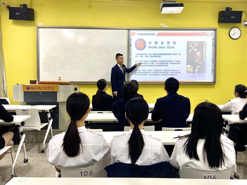2021年5月6日晚,中国金钥匙福州地区副秘书长涂炜炜先生莅临我院为金钥匙班学员开展了《金钥匙品牌价值》专题讲座。参加讲座的人员有航海学院副院长翁国玲、张琳老师以及2020级金钥匙班学员。