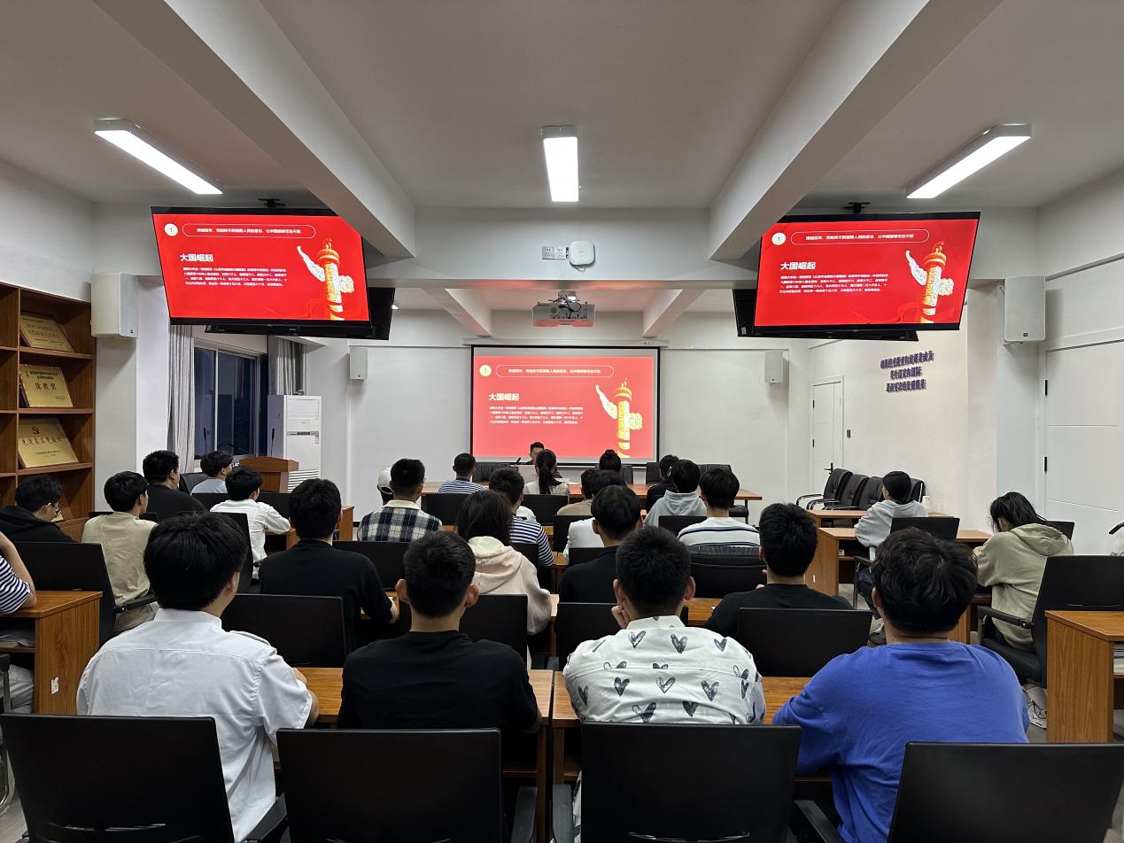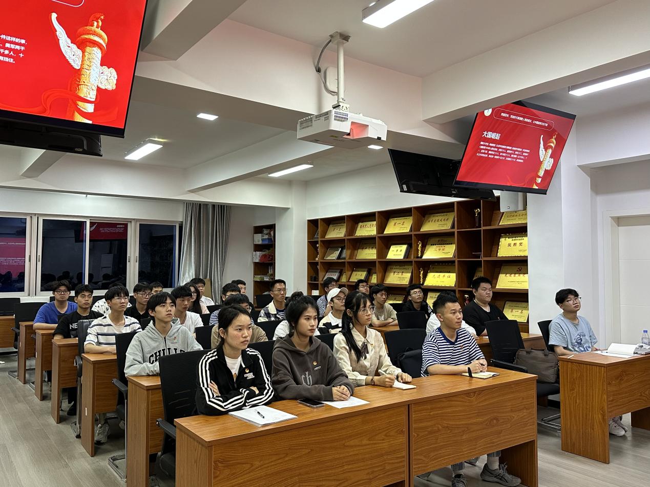 辅导员陈庚森以《感悟百年-党史蕴含的真力量》为主题,为与会人员上了一堂专题党课。