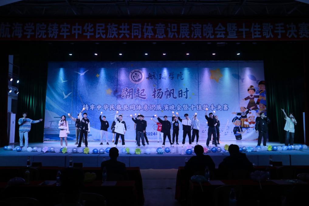 为将“铸牢中华民族共同体意识”融入办学治校、教书育人的全过程,发挥文艺汇演等文体活动的美育育人功能,促进各民族师生全面交流、深度交融。3月17日,航海学院特此举办以“潮起扬帆时”为主题的铸牢中华民族共同体意识展演晚会暨十佳歌手决赛活动。航海学院党总支书记江文、分团委书记陈若蘅出席活动,少数民族代表、各二级学院嘉宾、23级各班级学生共667人参加本次活动。