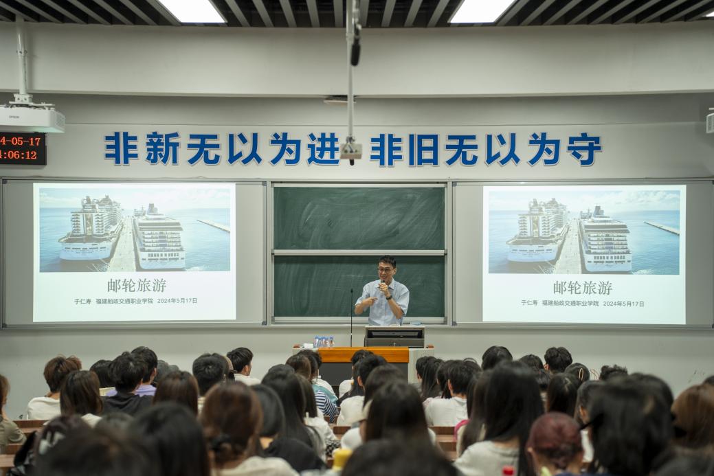 2024年5月18日,集美大学工商管理学院于仁寿教授于我院举办了一场主题为“两岸邮轮旅游产业发展分析”的讲座。此次讲座特别针对22级国际邮轮乘务管理专业的学生们,旨在通过专业视角,深入探讨两岸邮轮旅游产业的现状、挑战与发展趋势。