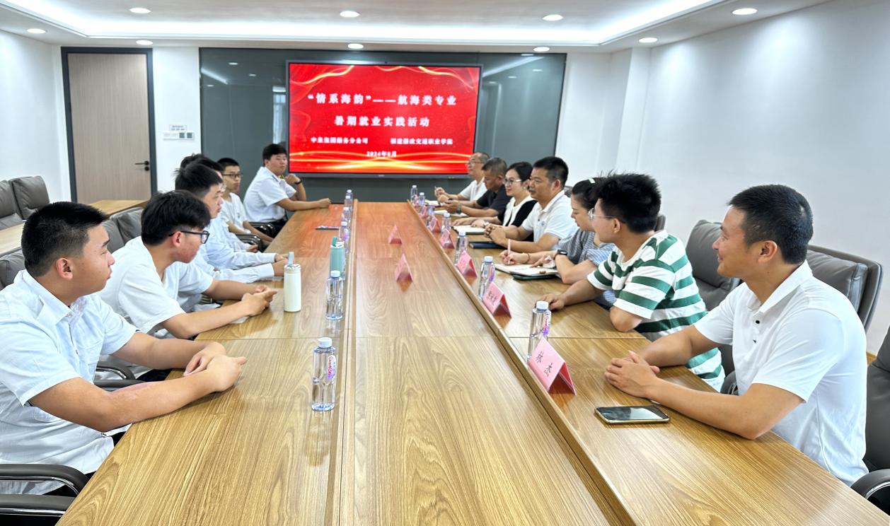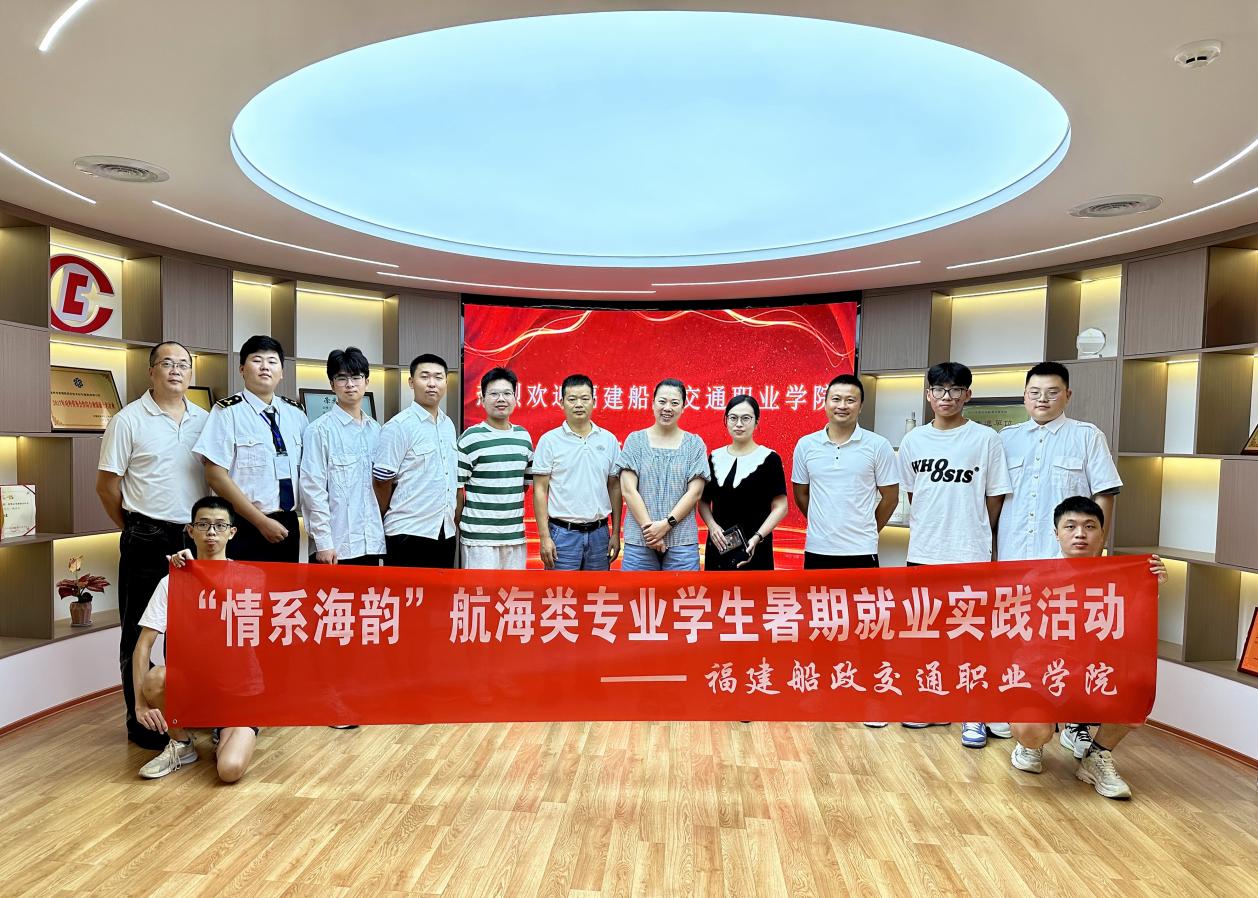 89日,福建船政交通职业学院“情系海韵”航海类专业学生暑期就业实践活动队一行,由航海学院党总支副书记朱宝杉、辅导员林杰、陈林泉老师带队,携中泉国际经济技术合作(集团)有限公司订单班学员7人,来到中泉国际经济技术合作(集团)有限公司进行就业实践活动。中泉集团船务分公司副经理庄文显、王佳妮等热情的接待了我们。