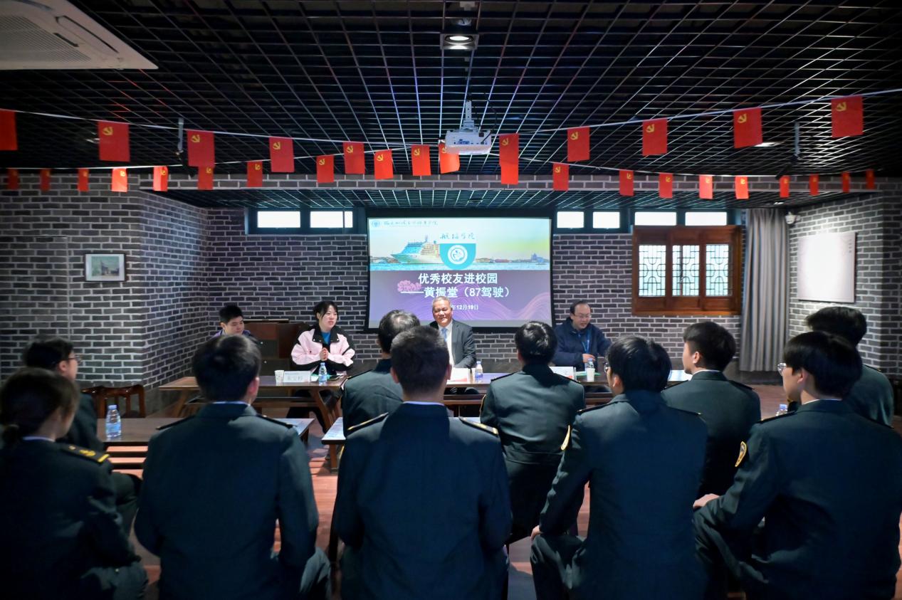 山海自有归期,风雨自会相逢。12月19日,我校航海学院迎来一场别开生面的校友进校园活动。活动邀请1987届杰出校友黄振堂分享他在船上的工作经历及见解,航海学院部分同学参加本次活动。