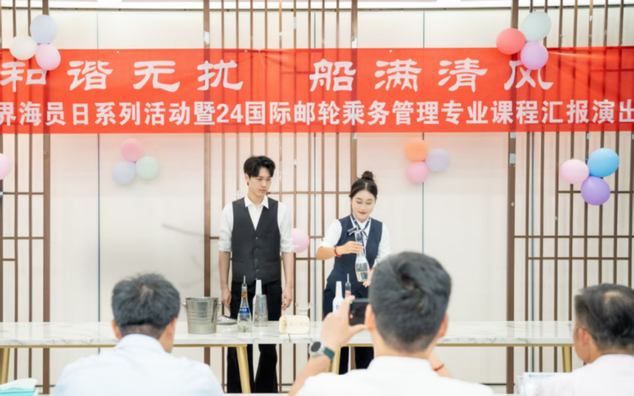 为庆祝世界海员日并检验教学成果,航海学院于6月18日在邮轮五高训练中心一期成功举办了“和谐无扰,船满清风”世界海员日系列活动暨24级国际邮轮乘务管理专业课程汇报演出。学院领导、行业专家及师生代表共同参与了活动。