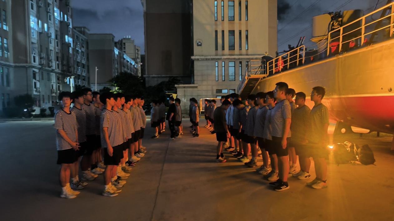 半军事化管理的精髓在于团队,而夜间训练则是凝聚团队力量的绝佳舞台。集体行动是夜间训练的基本模式。无论是整齐的队列行进,还是需要默契配合的战术动作,亦或是体能训练中的相互鼓励,都深刻诠释着“团结就是力量”的真谛。在共同的训练目标下,学生们学会了倾听指令、有效沟通、彼此信任与协同发力。船舶是一个封闭而独立的工作空间,船员之间的紧密协作是航行安全与效率的根本保障。夜间训练模拟了部分特殊工况下的团队响应模式,使学生们提前适应如何在压力下保持团队高效运转,如何依靠同伴的支持共渡难关,将“集体”二字深深烙印在心间。