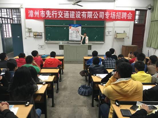 为促进我系2016届毕业生就业,在我系的精心安排下,于2015年11月4日下午2:00~4:00在土建楼第二阶梯教室召开了漳州先行交通建设有限公司专场招聘会.