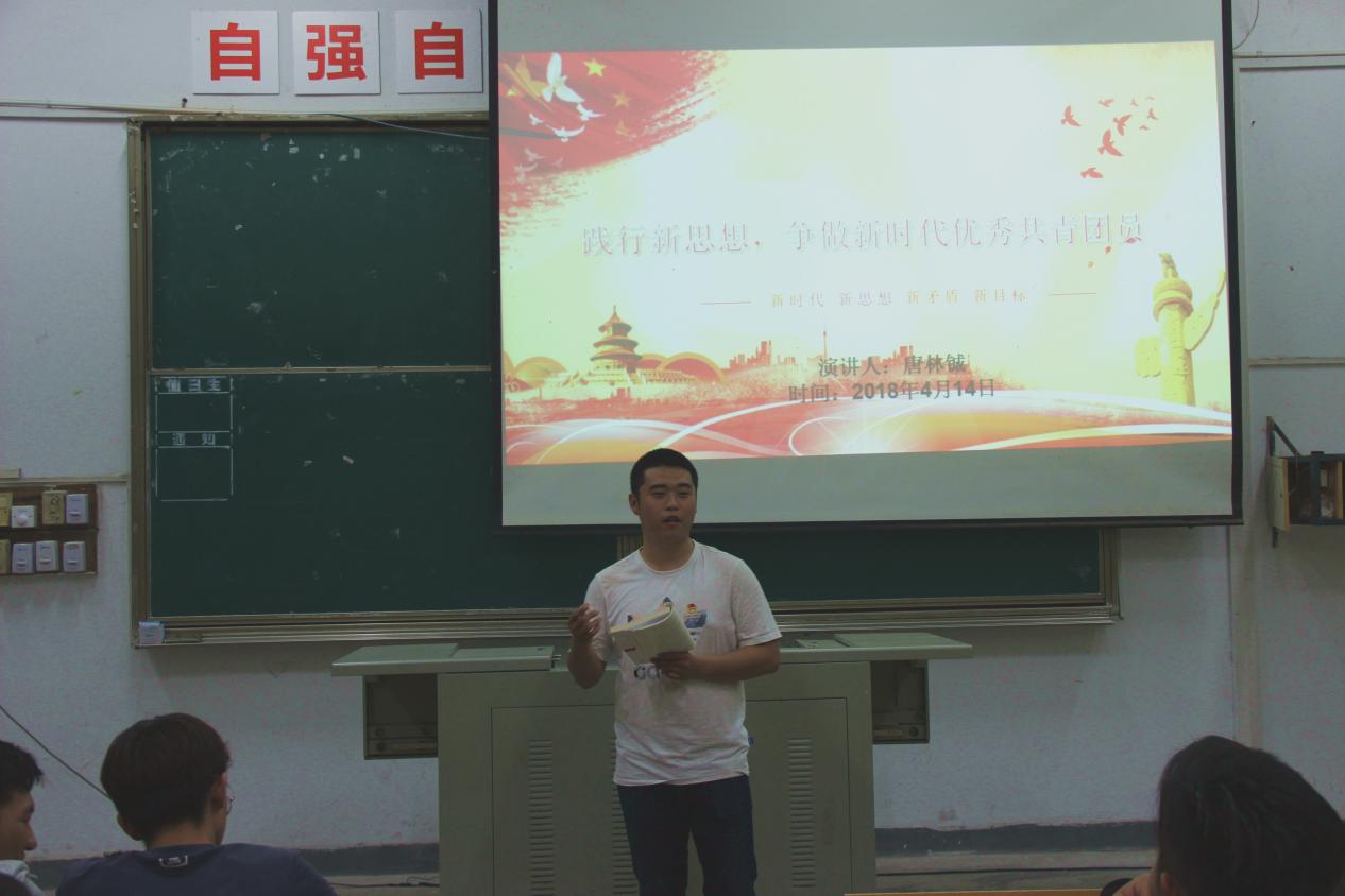 为了让同学们更好地践行十九大新思想,争做新时代优秀共青团员,道路工程系唐林铖同学于2018年4月14日在土建楼第一阶梯教室为道路工程系16、17级同学开展了一场关于新思想的演讲。