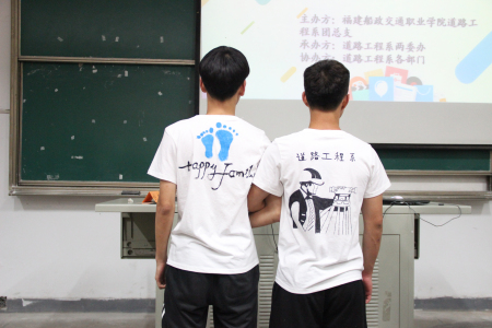 到场同学按照预定的分组开始了紧张的绘制工作。很快,一幅幅优秀的作品渐渐展现在大家面前。有的作品描绘了山中开路,江河架桥的景象,形象展现了我们道工“逢山开路,遇水架桥”系部精神;有的作品手绘了一名测量工人,并在其上标明“道路工程系”,展现了道工精英吃苦耐劳,坚韧不拔的品质;有的作品则在衣服正面画了立体飞机,其下方用红底白字表明“DAOGONG”,展现道工精英愿带领下一届学弟学妹展翅高飞,弘扬道工精神的决心。