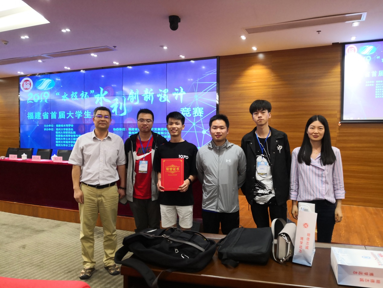 2019年5月18日,由福建省水利学会主办的“水投杯”福建省水利创新设计大赛在福州大学举行,我院道路工程系参赛队伍(学生:陈鹏、吴伟国、王瑞萌、林元斌;指导教师:沈秋池、钟婉婷)荣获本次大赛二等奖。参加本次大赛的院校有福州大学(本科)、福建师范大学(本科)、福建水利电力职业技术学院、厦门理工学院(本科)、及我院等省内各高校,共45支队伍。